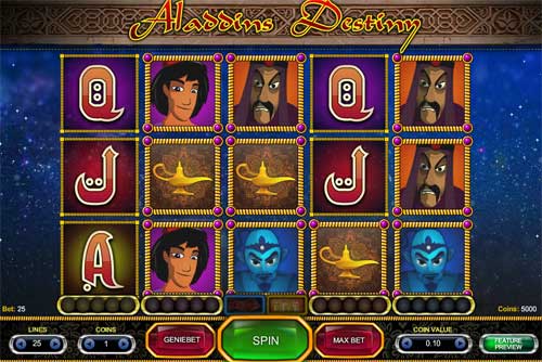 Aladdin’s Destiny tar deg med på et eventyr, til «en helt ny jord». Spilleautomaten er basert på en av historiene i «The Arabian Nights», Aladdin. Mer spesifikt Walt Disney’s suksessfulle filmversjon fra 1992. Kort fortalt er Aladdin en fattig gaterotte, som bor i byen Agrabah med apen Abu. Ved ren tilfeldighet, møter de to kompisene på prinsesse Jasmin, og Aladdin blir hodestups forelsket i henne. Da han og Abu finner ånden Genie, vil han bli gjort om til en prins slik at han kan gifte seg med henne. Dette byr på utfordringer da den maktsyke skurken Jafar er på jakt etter Genie, samt å gifte seg med Jasmin. Bare tittelen i seg selv fra originalhistorien, avslører hva 1×2 Gaming pønsket på da de utviklet dette spillet. De vil lokke deres spillere med «ånden i lampen». Ånden som gir tre ønsker til den personen som gnir på lampen og tilkaller den. En slik ånd er ofte assosiert med en god blanding av galskap, rikdom og hell.