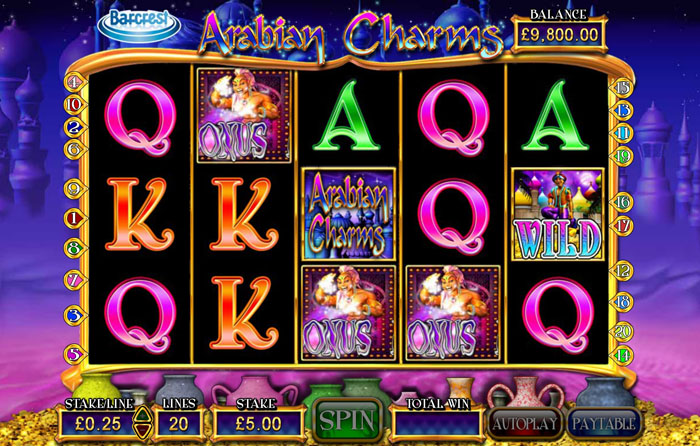 Spilleautomater med arabiske temaer har blitt veldig populære den siste tiden. Et av de nyeste i denne sjangeren heter Arabian Charms, hvor tema selvfølgelig henger sammen med tittelen, Arabiske eventyr. Og hva er mer spennende en flyvende tepper og selveste Ånden i lampen, som kan gjøre alle dine drømmer til virkelighet. Software produsenten Barcrest har tidligere lagd flere spill med samme tema og vist at de gjør dette på en eksklusiv måte. Kanskje gjør de det også litt bedre enn konkurrentene sine, for i automatspillet Arabian Charms treffer de ekstra godt.