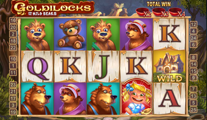 I Goldilocks får du spille på fra 1 til 25 innsatslinjer, og innsatsen per linje er mellom 0.01 til 4 €. Det gjør maksimal innsats per spinn til 100 € (omtrent kr 810) eller tilsvarende. Det passer godt for high rollers, men også low rollers for den lave inngangspunktet for innsatsen. Spillet har hurtigspill, samt en autospinnfunksjon der du kan velge mellom 5, 10, 25 eller 50 autospinn. Med andre ord lever Goldilocks opp til navnet til selskapet back det, her kan du jammen får deg noen “quick spins”! De symbolene som gir høyest gevinst er vanlig wild (huset) som med fem like gir €1 000. Dette symbolet har også fordelen at det erstatter alle symboler bortsett fra gratisspinn scatter, og gratisspinn progressiv scatter. Det symbolet som gir nest høyest utbetaling er pappabjørn, med €250, som ikke er verst for en bamse i sin beste alder.