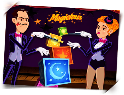 Temaet i spillet Magicious kommer frem så fort man ser på spillets navn. Det er jo så klart magi og illusjon som er det gjennomgående temaet for dette spillet, og man har to hovedkarakterer som utfører sine triks. Disse er kvinnen Magicia og mannen Illucious – Magicious. Sammen får disse to karakterene frem en magiske stemning i Magicious med sine tryllestaver og ikke minst morsomme kostymer. Det er uten tvil et ganske unikt tema, men det ser ut til å fungere utrolig bra som en spilleautomat.